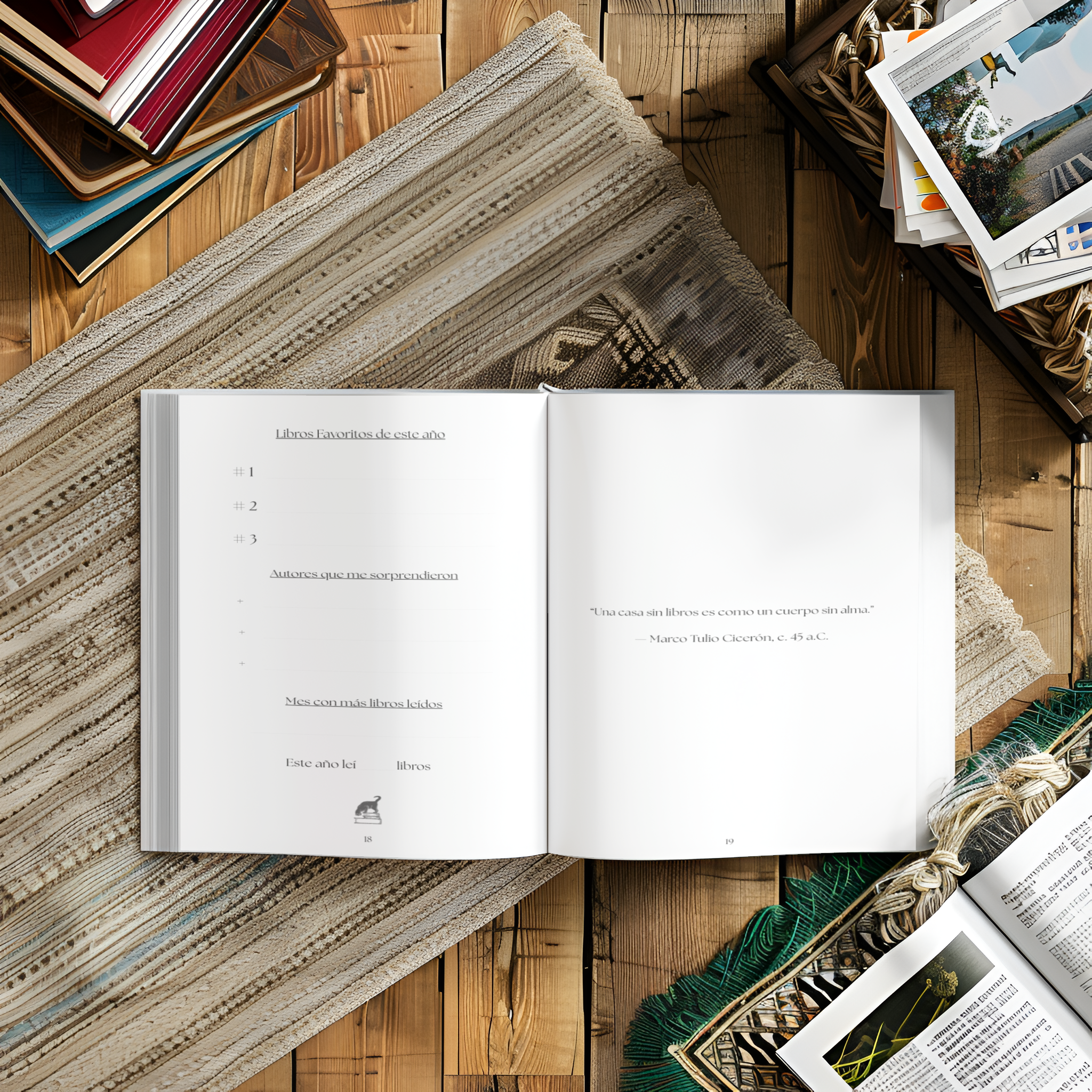 Este no es un cuaderno para escribir reseñas ni profundizar en análisis literarios: es para llevar un listado completo, visual y organizado de todo lo que lees año tras año.